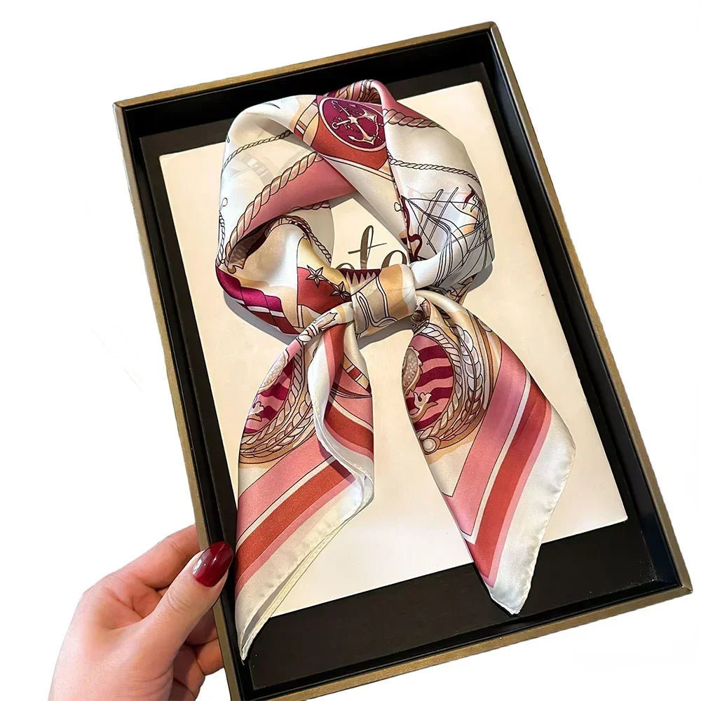 Luxury Design Print Silk Square Scarf Women Soft Satin Horse Hairband Neckerchief Office Hijab Headband Foulard Bag Ribbons Gift